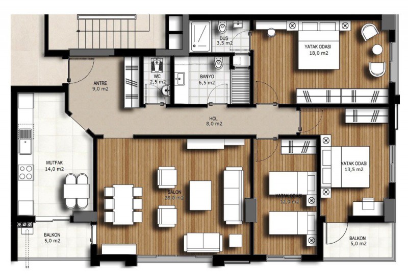 3+1 Daireler 150 Metrekare Brüt